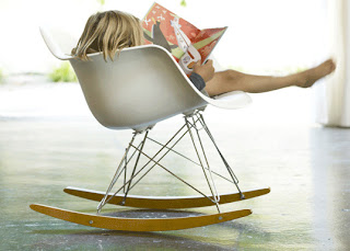 I am going to fetch the Eames plastic RAR rocker I ordered a while ago this weekend. Okay, it's a replica, but I can't wait to sit in it and read a book - kinda like this little girl... Image: Inhabitots